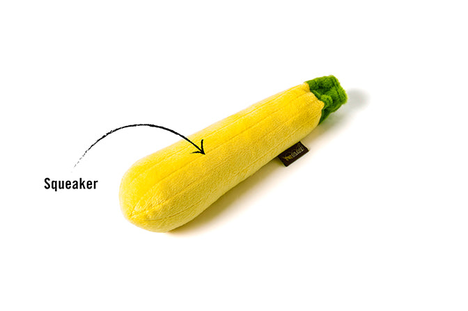 Who says veggies can’t be fun? P.L.A.Y.'s Garden Fresh Zucchini dog toy is available in two sizes, each filled with squeakers to keep your pup entertained for hours. It’s the perfect choice for pups who love to “veg” out with a little squeaky action. Whether it's a small or large dog, the zucchini's soft texture and playful squeak will have them wagging their tails all day!